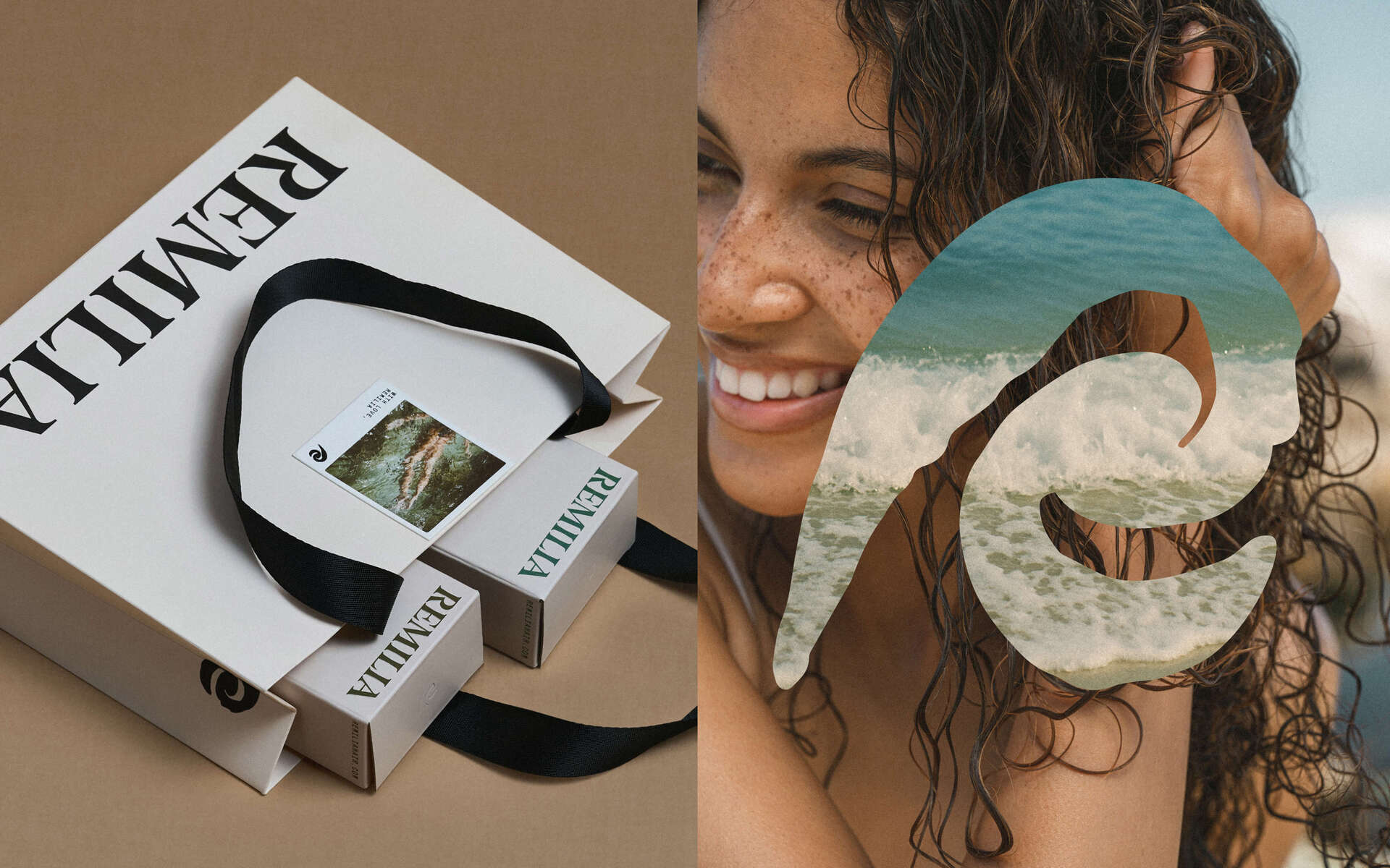 For Remilia, we achieved this by creating logotype that's actually readable yet distinctive, pairing it with small dose of art. New abstract "R" symbol we crafted does triple duty: looks like gentle wave, strand of hair, symbol of renewal, all in one graceful stroke.