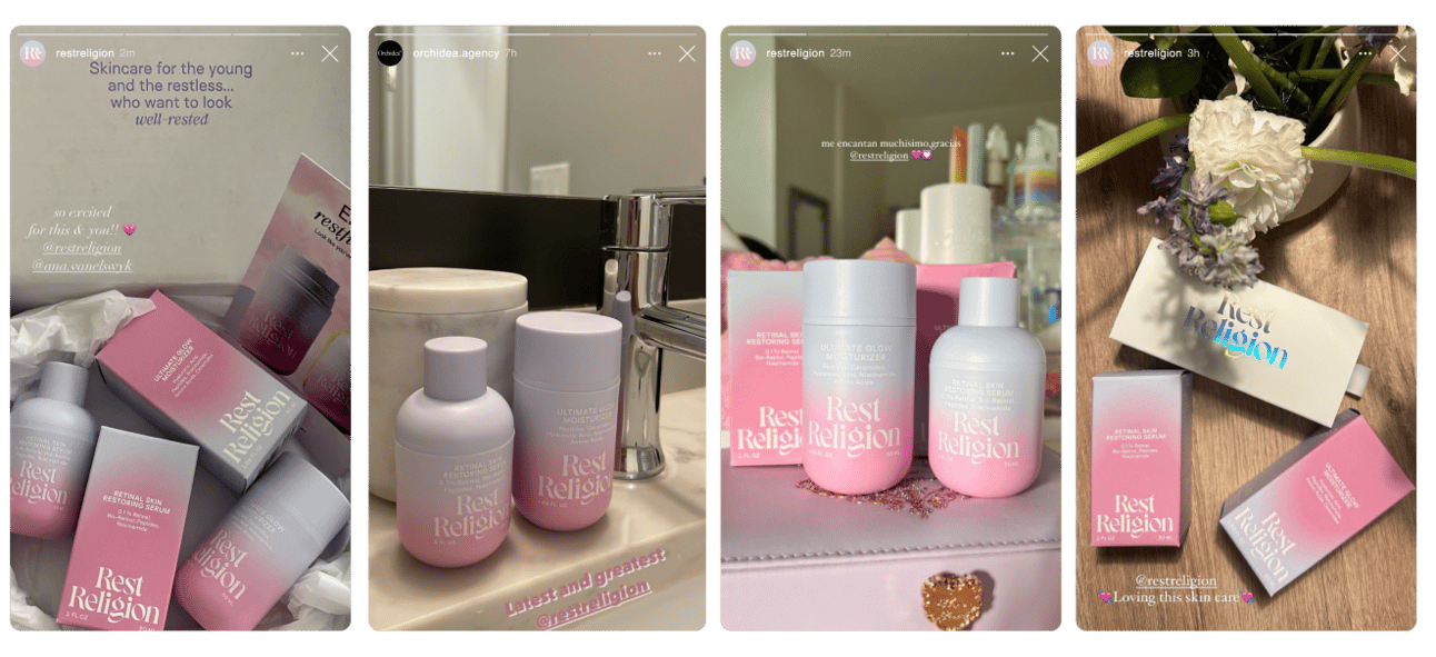 In world where rest is privilege, Rest Religion steps in to support you in moments when you can't hit pause when you need it. Brand reminds you rest is essential to well-being while acknowledging challenge of getting enough of it. Products work like chicken soup for skin: soothing effects of stress, restoring balance, building resilience for future. This isn't just marketing campaign. It's essence of brand, influencing everything from product development to customer experience.