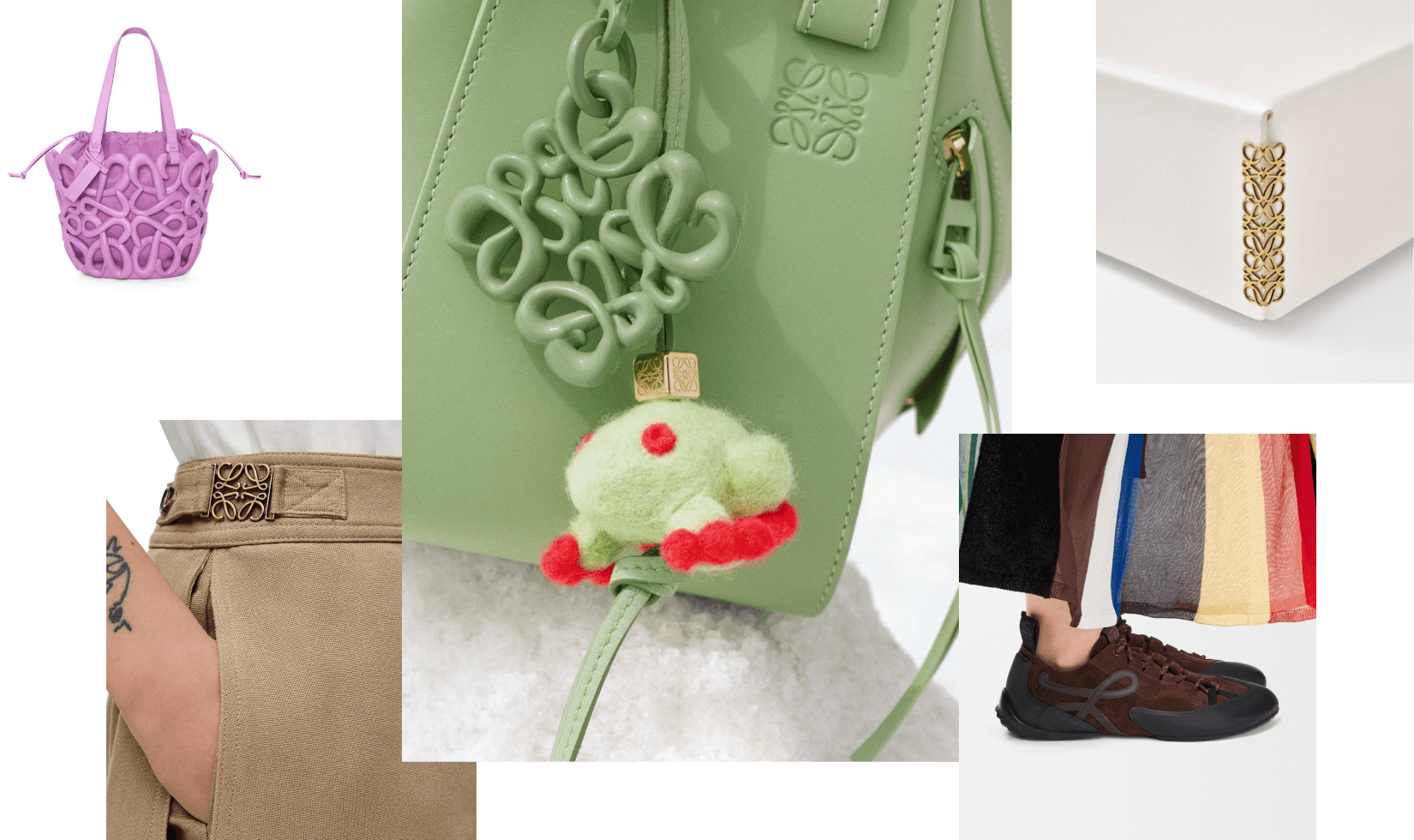And importantly, Loewe never treats it passively. The brand constantly experiments with scale, placement, and material, turning the symbol into hardware, sculptural elements, oversized statements. If it stayed a small, polite mark in the corner, it would never have become iconic.