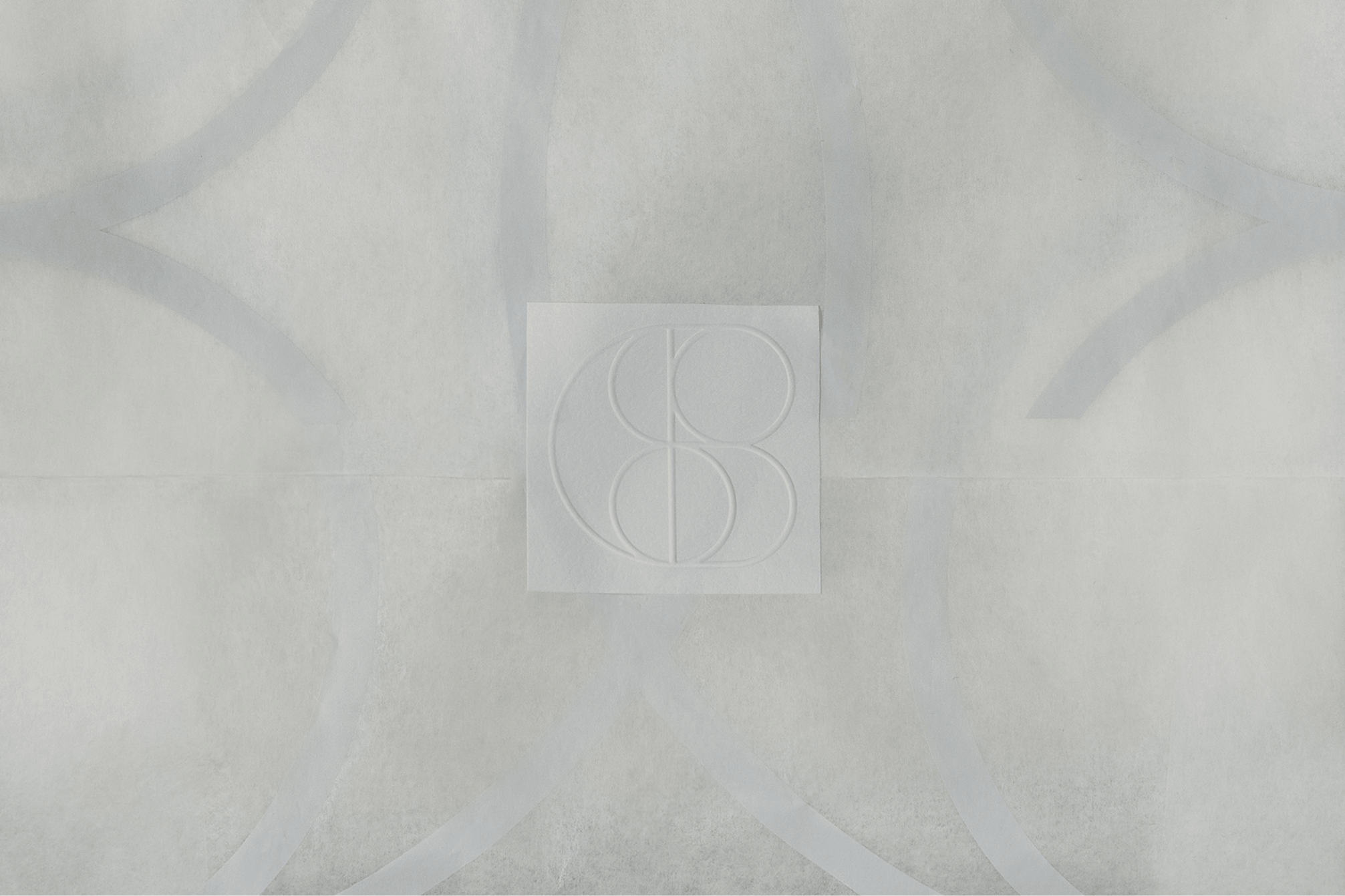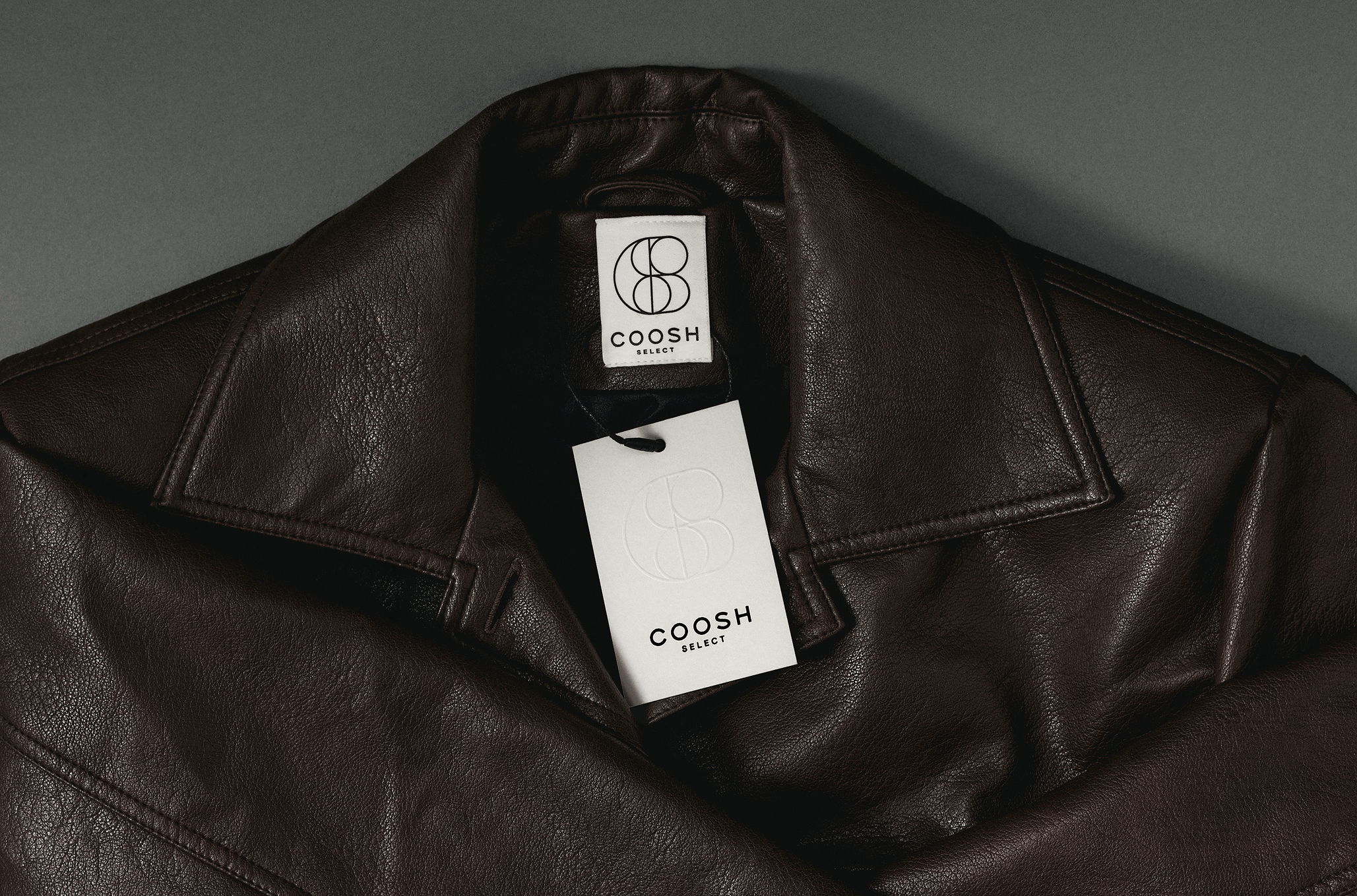 The letter "C" wraps around the double "o," while the "S" flows between them as a connecting gesture. The "H" is hidden inside the structure, its vertical and horizontal strokes providing architectural stability to what would otherwise be a purely fluid form. The second guiding idea was scalability across all touchpoints. At small sizes on woven labels or embossed leather, the clean geometry holds. Produced in metal for brooches, clasps, or belt hardware, the simple intersecting lines translate directly into manufacturing. Repeated as a grid, the symbol becomes a rhythmic pattern for tissue paper, dust bags, or textile prints.
